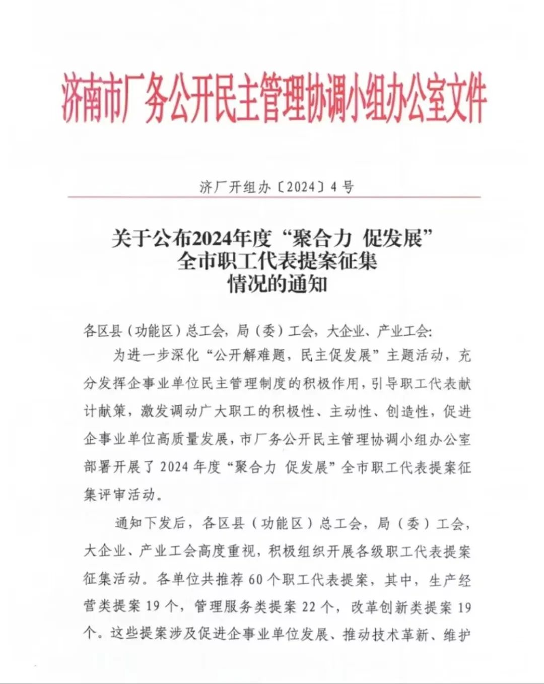 近日,濟(jì)南市總工會(huì)下發(fā)《關(guān)于公布2024年度“聚合力 促發(fā)展”全市職工代表提案征集情況的通知》,大智控股集團(tuán)工會(huì)《關(guān)于對(duì)師范畢業(yè)生開(kāi)展素養(yǎng)提...