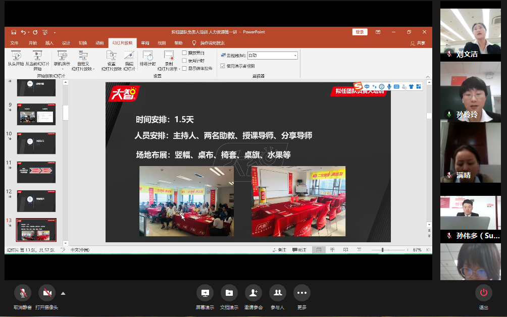 4月22日下午,大智教育集團(tuán)人力資源中心總管孫玲玲從人力資源規(guī)劃、招聘與設(shè)置、培訓(xùn)與開(kāi)發(fā)、績(jī)效考核、薪酬福利、員工關(guān)系六個(gè)方面為大家詳細(xì)講解了《人力資源概述》的相關(guān)內(nèi)容,各區(qū)域(公司)的黨員們通過(guò)視頻連線的方式參加了培訓(xùn),通過(guò)學(xué)習(xí),各位黨員家人對(duì)大智的人力資源相關(guān)工作有了更深刻的了解與記憶。