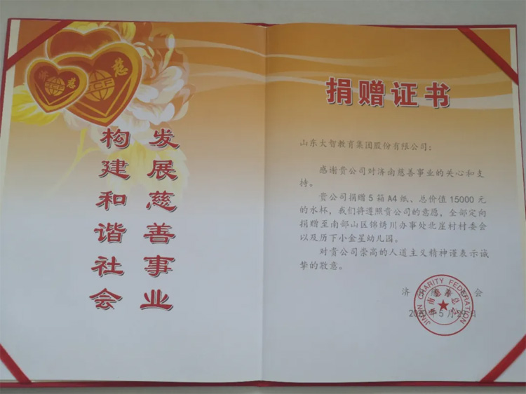 捐贈(zèng)的禮物雖不貴重,但情意無(wú)價(jià),希望孩子們用心感受愛(ài)與希望。活動(dòng)最后濟(jì)南慈善總會(huì)為大智頒發(fā)證書(shū)和錦旗,對(duì)大智表示感謝。