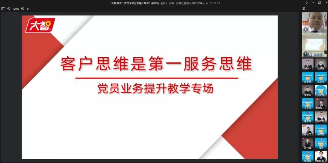 為充分發(fā)揮黨員先鋒模范帶頭作用,全面調(diào)動(dòng)黨員的積極性和創(chuàng)造性,5月19日至20日,大智教育集團(tuán)黨委在集團(tuán)總部組織開展了“先鋒突擊”黨員專項(xiàng)業(yè)務(wù)提升培訓(xùn),共分為教學(xué)顧問專場和學(xué)習(xí)顧問、市場專員專場。集團(tuán)總部和濟(jì)南區(qū)域現(xiàn)場參加,外地區(qū)域視頻連線參加。