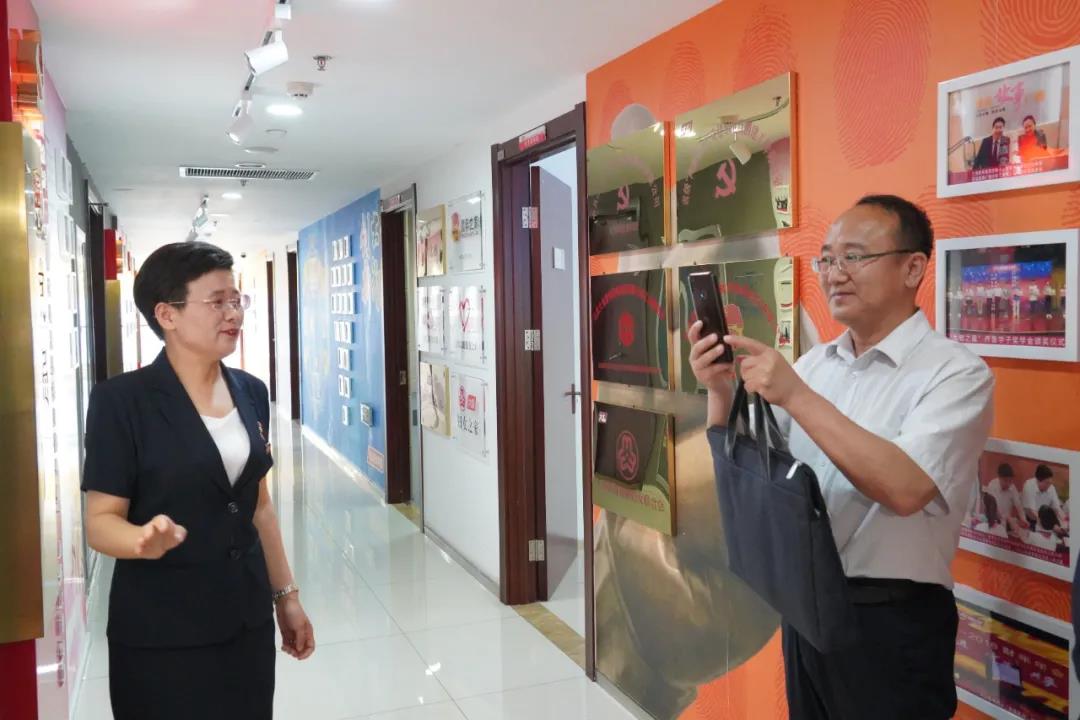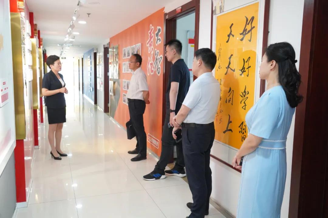 6月7日,省級(jí)兩新組織黨建工作示范點(diǎn)推薦對(duì)象調(diào)研復(fù)核一組到大智調(diào)研指導(dǎo),調(diào)研組成員煙臺(tái)市委兩新工委專職副書(shū)記呂永杰,膠州市委組織部?jī)尚罗k張玉磊,在濟(jì)南市委組織部組織二處副處長(zhǎng)黃海的陪同下,對(duì)“省級(jí)兩新組織黨建工作示范點(diǎn)”創(chuàng)建工作進(jìn)行實(shí)地考察。大智教育集團(tuán)黨委書(shū)記王現(xiàn)芹,創(chuàng)始人、董事長(zhǎng)張維東熱情接待。