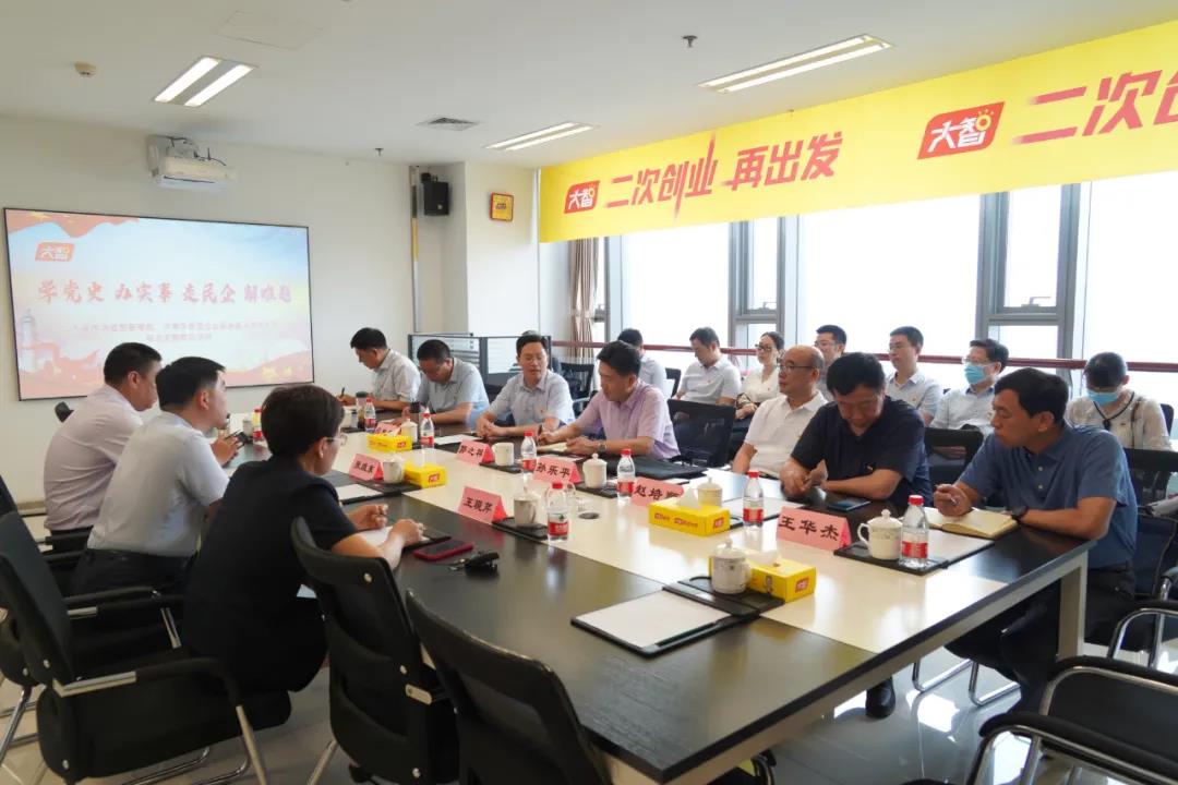 6月23日,山東省市場監(jiān)督管理局、濟南市民營企業(yè)高質(zhì)量發(fā)展服務隊在大智聯(lián)合開展“學黨史 辦實事 走民企 解難題”主題黨日。省市場監(jiān)督管理局黨組成員、副局長郭之祥,省市場監(jiān)督管理局一級調(diào)研員、個體私營經(jīng)濟發(fā)展促進處處長孫樂平,濟南市民營企業(yè)高質(zhì)量發(fā)展服務隊總領隊閆卓然等相關領導出席活動。大智教育集團黨委書記王現(xiàn)芹,董事長張維東熱情接待。
