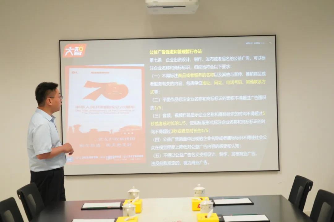 7月14日,大智教育集團黨委副書記蔡小帥為黨員干部們帶來《規(guī)范宣傳 應知必知》的內容培訓,蔡小帥從中國廣告法律體系、廣告代言人的認定、絕對化用語的范圍、虛假廣告的認定、廣告意識形態(tài)問題、教培行業(yè)宣傳規(guī)范6個方面進行詳細講解,部分黨員現場參加培訓,其他區(qū)域(公司)的黨員們通過視頻連線的方式參加培訓。通過此次學習,各位黨員家人對大智的市場宣傳規(guī)范有了更深刻的認知。
