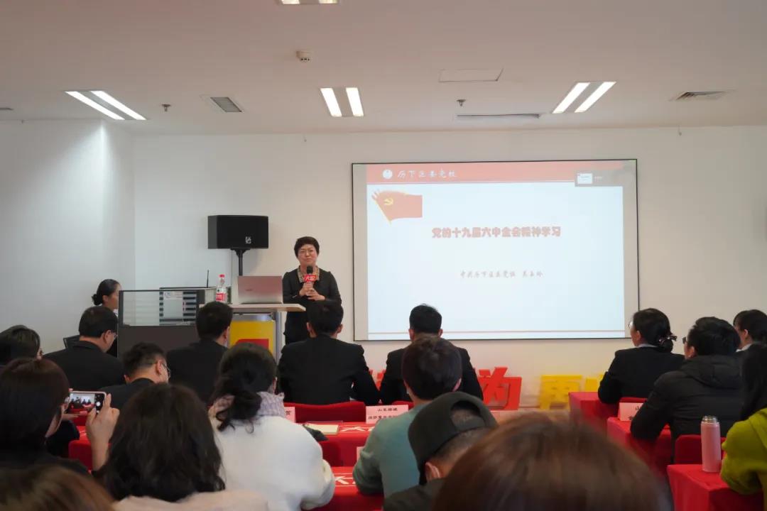 濟(jì)南市歷下區(qū)委黨校吳玉玲老師現(xiàn)場(chǎng)為大家講述了《黨的十九屆六中全會(huì)精神學(xué)習(xí)》,通過吳老師深入淺出、生動(dòng)清晰的講述,大家加深了對(duì)十九屆六中全會(huì)精神的認(rèn)識(shí),明白了十九屆六中全會(huì)的精神實(shí)質(zhì)。