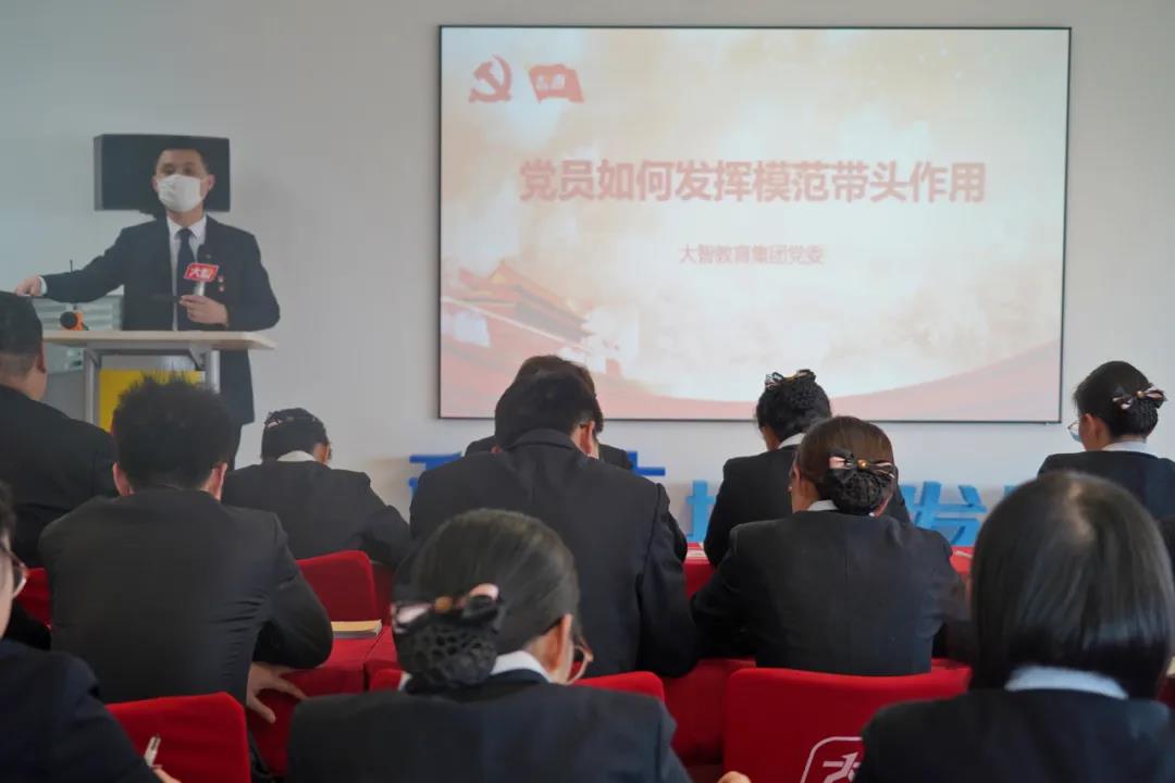 隨后,由大智教育集團(tuán)黨委委員常廣成帶來《黨員如何發(fā)揮模范帶頭作用》主題分享。