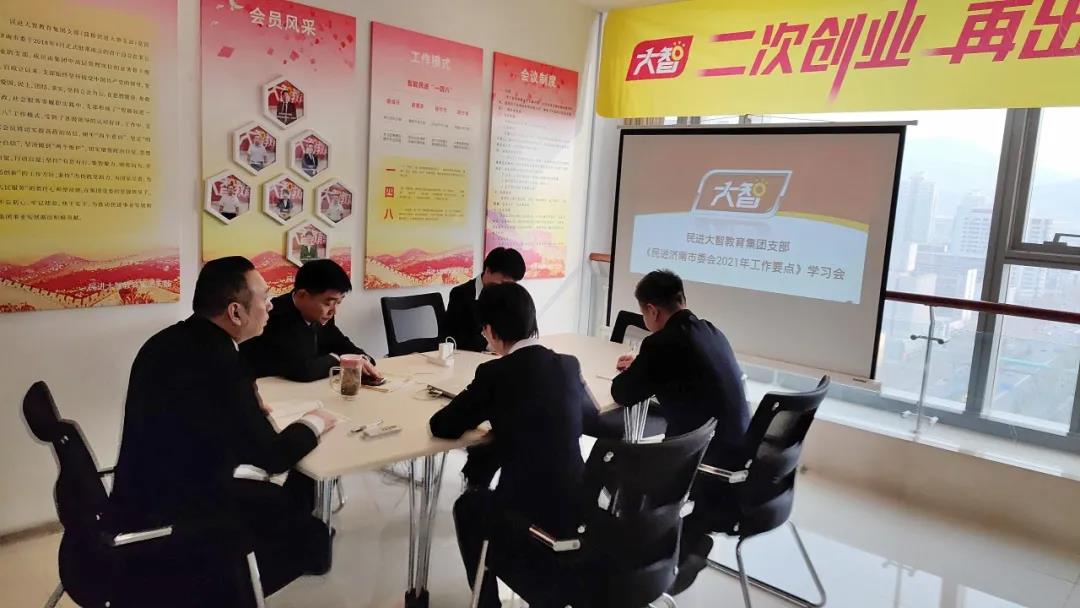 3月12日下午,民進(jìn)大智教育集團(tuán)支部在主任張維東的帶領(lǐng)下集體學(xué)習(xí)了《民進(jìn)濟(jì)南市委會(huì)2021年工作要點(diǎn)》,支部副主任趙珩主持會(huì)議。