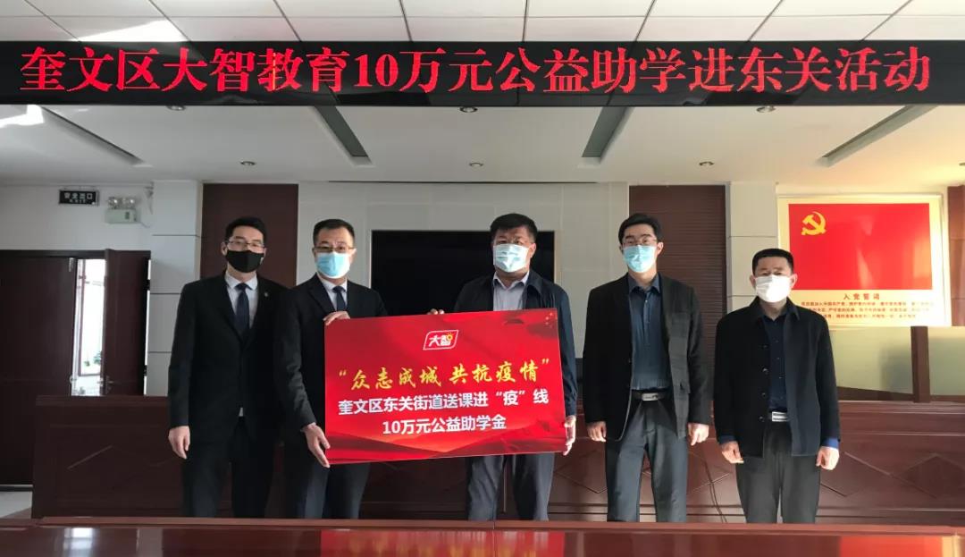 新冠疫情爆發(fā)期間,大智濰坊區(qū)域黨支部牢記使命勇?lián)?dāng),充分發(fā)揮黨員先鋒模范作用,組織發(fā)起募捐活動,累計(jì)募捐2450元愛心善款和9臺愛心音響,為疫情防控提供硬件設(shè)備支持,打通疫情防控最后一公里。同時聯(lián)合奎文區(qū)東關(guān)街道共同發(fā)起“送課進(jìn)‘疫’線公益助學(xué)”活動,捐贈助學(xué)金共10萬元,黨員公益,大智先行!