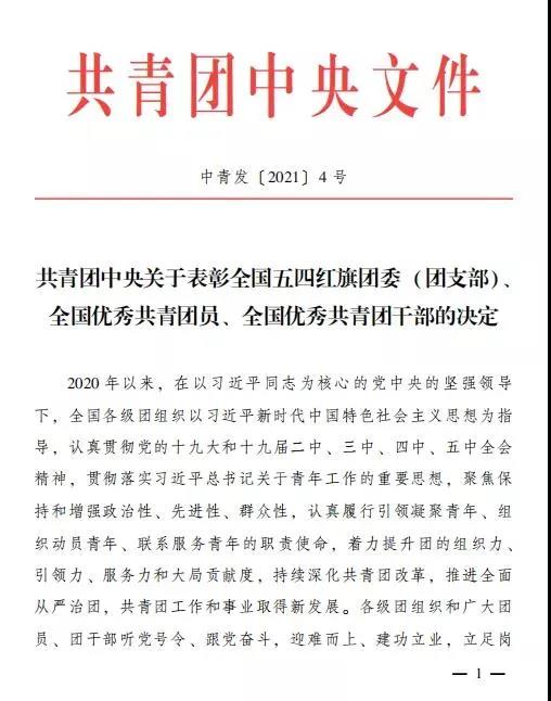 4月27日,共青團中央發(fā)布《關于表彰全國五四紅旗團委(團支部)、全國優(yōu)秀共青團員、全國優(yōu)秀共青團干部的決定》,山東省濟寧市任城