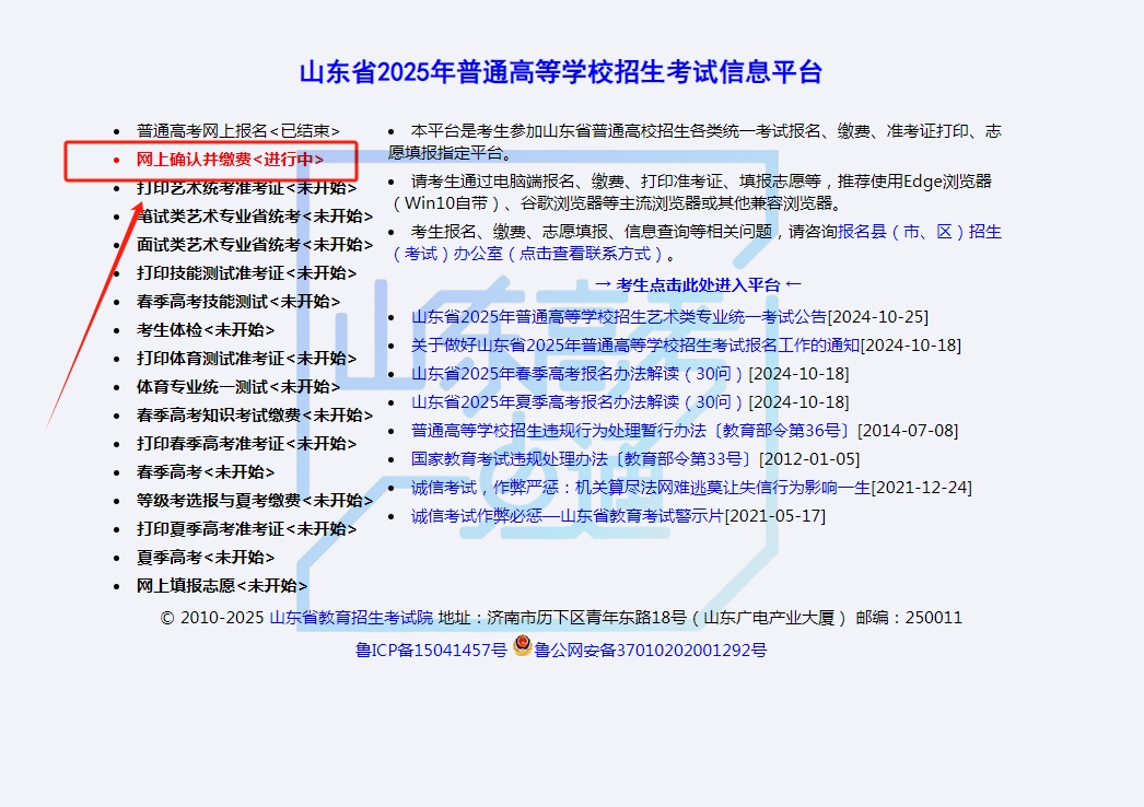2025高考報名繳費工作11月12日至16日(每天9:00-18:00)進(jìn)行。提醒還未繳納高考報名費的考生,及時登錄山東省教育招生考試院官網(wǎng)(http://wsbm.sdzk.cn)完成繳費工作。