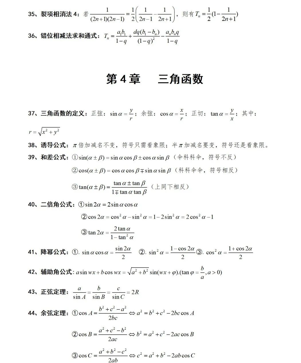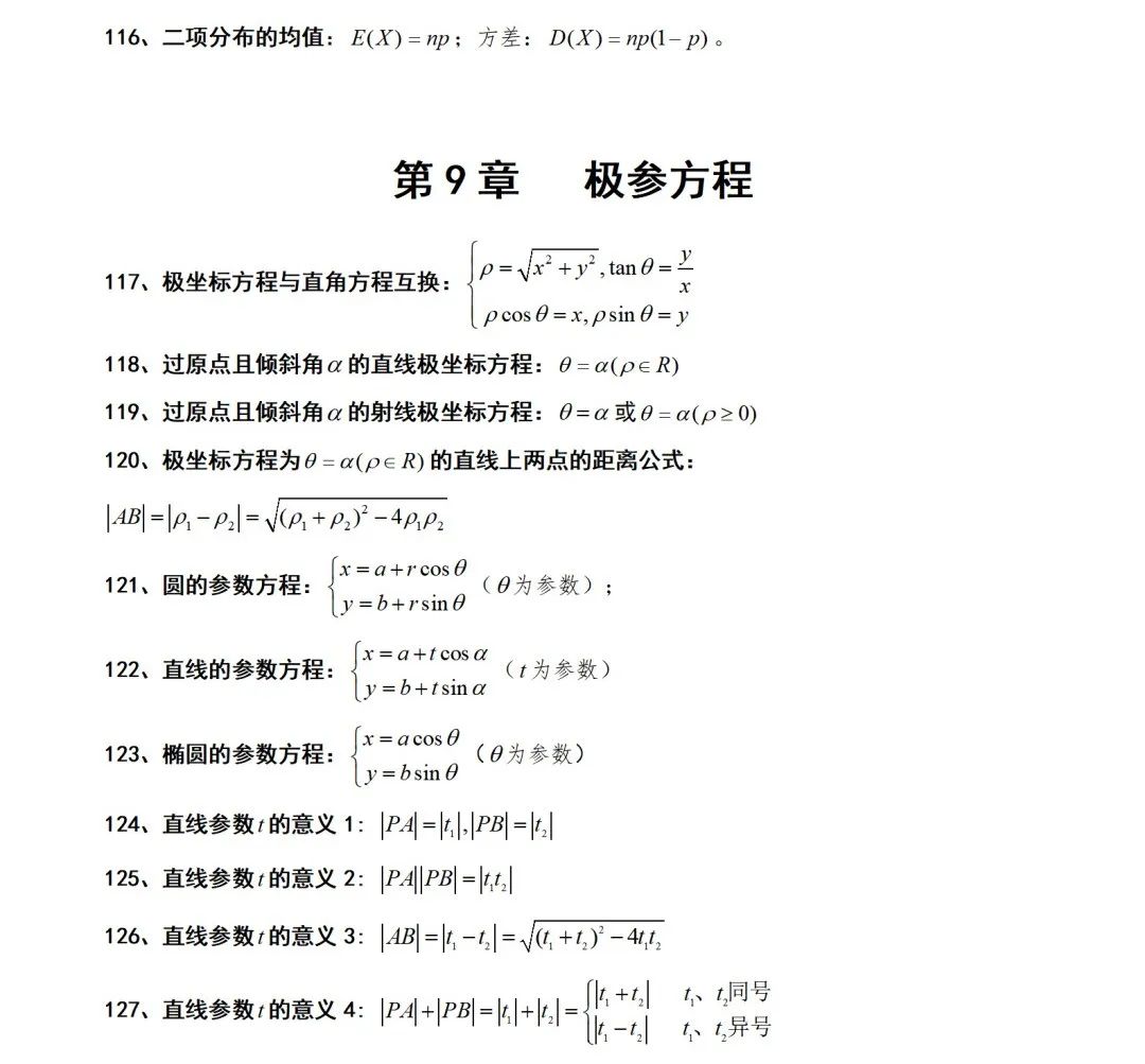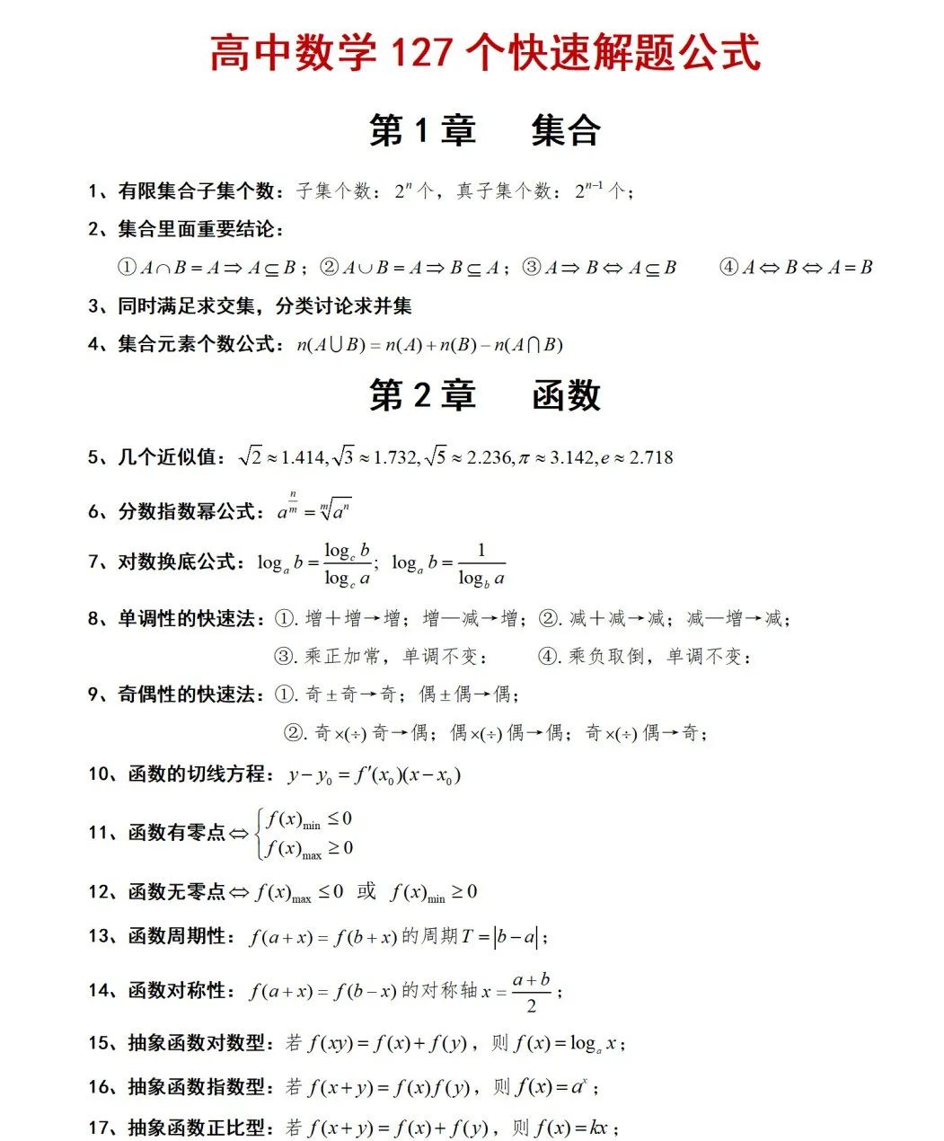 高中數(shù)學(xué)127個快速解題公式