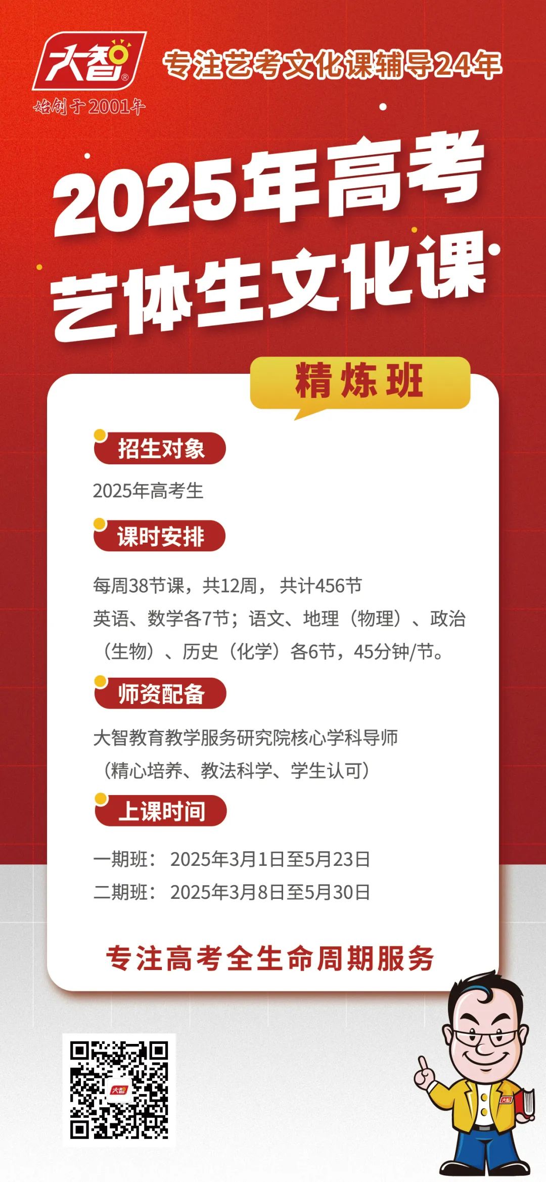 每一顆年輕的心都在為夢(mèng)想蓄力,大智攜手24載深耕細(xì)作的智慧結(jié)晶,誠(chéng)邀每一位懷揣藝術(shù)與體育夢(mèng)想的你,共同開(kāi)啟一場(chǎng)專(zhuān)屬于2025年高考生的文化課...