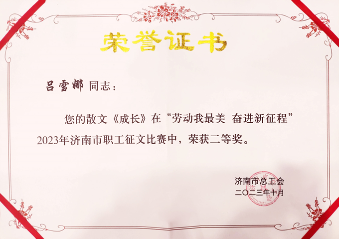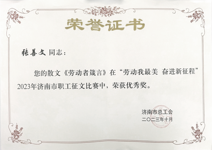 11月7日,“勞動我最美 奮進(jìn)新征程”2023年濟(jì)南市職工征文比賽頒獎儀式在全省工會融媒體中心舉辦。