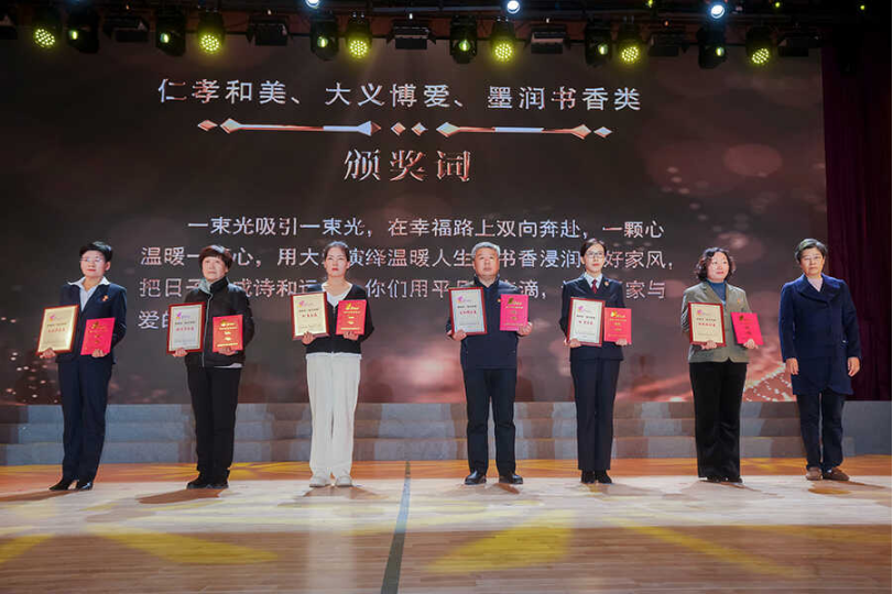 現(xiàn)場(chǎng),為2023年濟(jì)南市綠色風(fēng)尚、紅色傳承、墨潤(rùn)書(shū)香、樂(lè)業(yè)創(chuàng)業(yè)、仁孝和美、友好使者、大義博愛(ài)、數(shù)字先鋒、守正創(chuàng)新等類(lèi)型共120戶(hù)“最美家庭”代表進(jìn)行了頒獎(jiǎng)。大智控股集團(tuán)黨委書(shū)記、婦聯(lián)主席王現(xiàn)芹家庭榮獲2023年濟(jì)南市“最美家庭”稱(chēng)號(hào)。