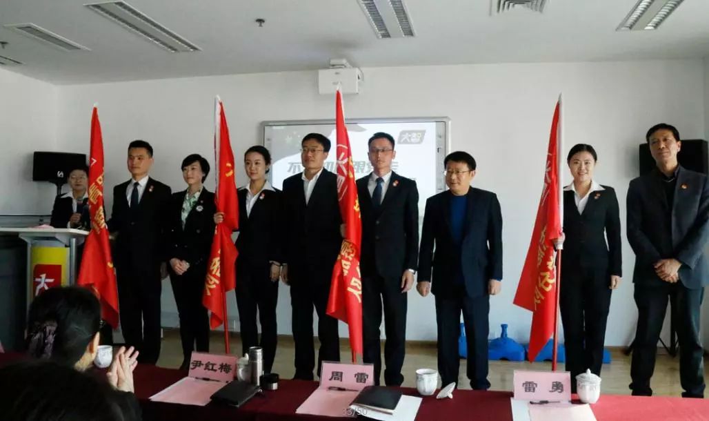 共青團(tuán)濟(jì)南市委副書記王友進(jìn),共青團(tuán)濟(jì)南市委組織部部長雷勇、中共濟(jì)南市歷下區(qū)委常委周雷、共青團(tuán)歷下區(qū)委副書記杜慶姝為“大智青年志愿服務(wù)隊(duì)”授旗。