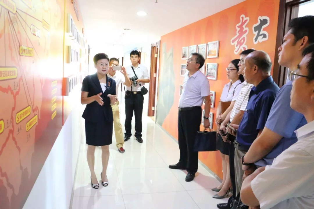王現(xiàn)芹帶領(lǐng)考察團(tuán)參觀了大智控股集團(tuán)總部,重點(diǎn)向大家闡釋了大智“智惠黨建”系統(tǒng)、“一三九”黨建工作模式和大智“一帶一促”群團(tuán)建設(shè)模式。