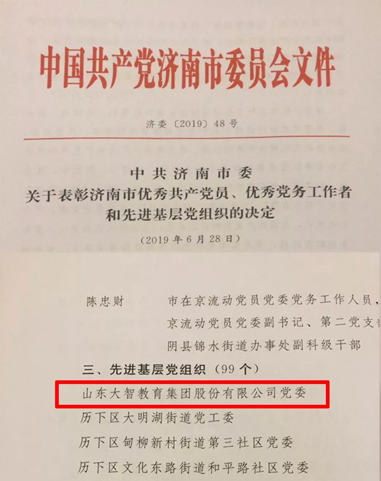 此次被評為“濟南市先進基層黨組織”將激勵大智控股集團黨委再接再厲,不斷提升黨建工作質(zhì)量和水平,努力在引領(lǐng)改革發(fā)展,推動做大做強中當(dāng)先鋒、做表率,為濟南市建設(shè)“大強美富通”現(xiàn)代化國際大都市作出積極貢獻。