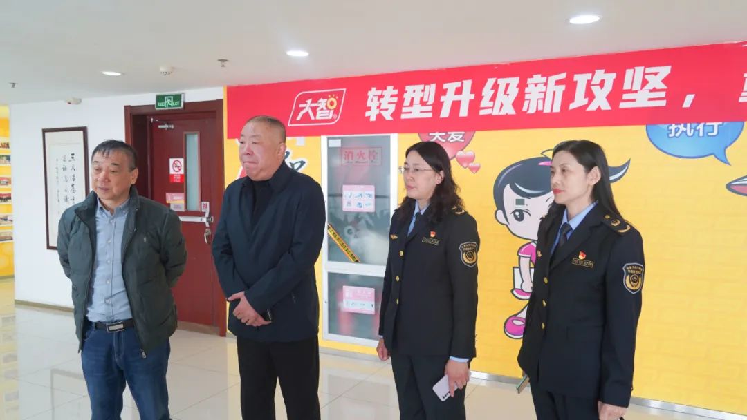 3月23日,濟(jì)南市市場(chǎng)監(jiān)管局非公黨建辦公室主任呂安榮、歷下個(gè)體私營(yíng)企業(yè)黨委副書(shū)記韓青一行蒞臨大智控股集團(tuán)總部調(diào)研。大智黨委書(shū)記王現(xiàn)芹,創(chuàng)始人、董事長(zhǎng)張維東熱情接待。