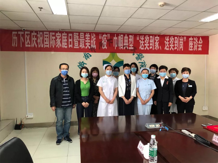 05月13日,濟南市歷下區(qū)慶祝國際家庭日暨最美戰(zhàn)“疫”巾幗典型“送獎到家、送獎到崗”座談會在歷下區(qū)人民醫(yī)院召開。歷下區(qū)委副書記尹紅梅,歷下區(qū)婦聯(lián)黨組書記、主席李健及獲獎代表參會。會上,尹紅梅為大智控股集團黨委書記、婦聯(lián)主席王現(xiàn)芹頒發(fā)了市區(qū)兩級“最美戰(zhàn)‘疫’婦聯(lián)人”榮譽獎杯和證書。