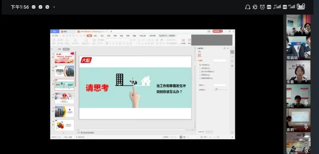 首先,王現(xiàn)芹用問題拋磚引玉:“當(dāng)工作和家庭發(fā)生沖突時(shí)你該怎么辦?”隨后,王現(xiàn)芹從家庭與工作的關(guān)系、平衡家庭與工作的小技巧兩個(gè)方面,結(jié)合自身的實(shí)踐和經(jīng)歷,為大家詳細(xì)講解了該如何正確處理工作和家庭的關(guān)系。