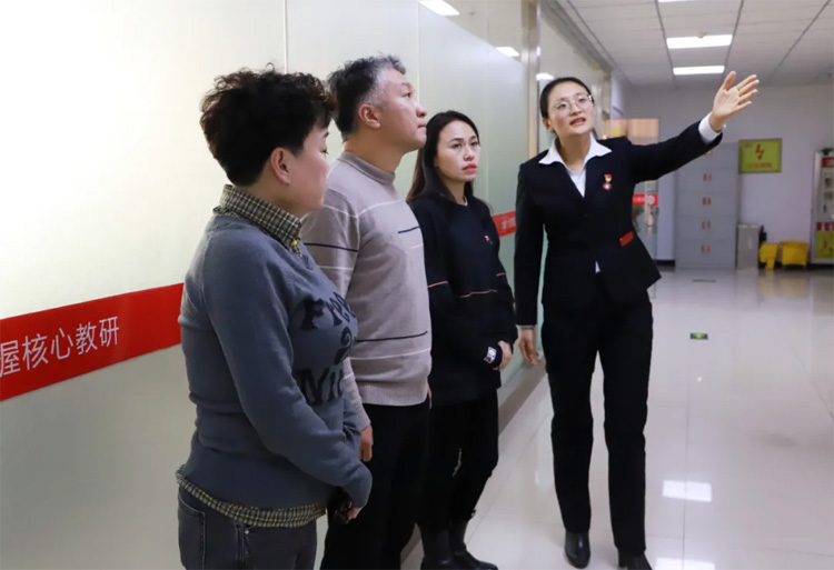 隨后,于翠平同志帶領大家參觀分校,主要圍繞辦學理念、課堂模式、課程研發(fā)、師資培訓以及教學質(zhì)量展開介紹。大家對大智在教育教學方面的探索和成果給予了積極肯定。
