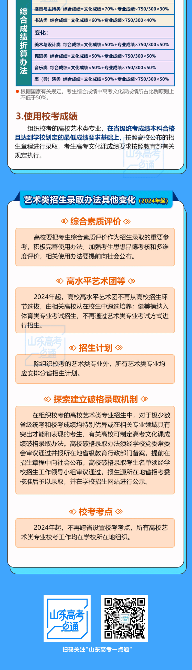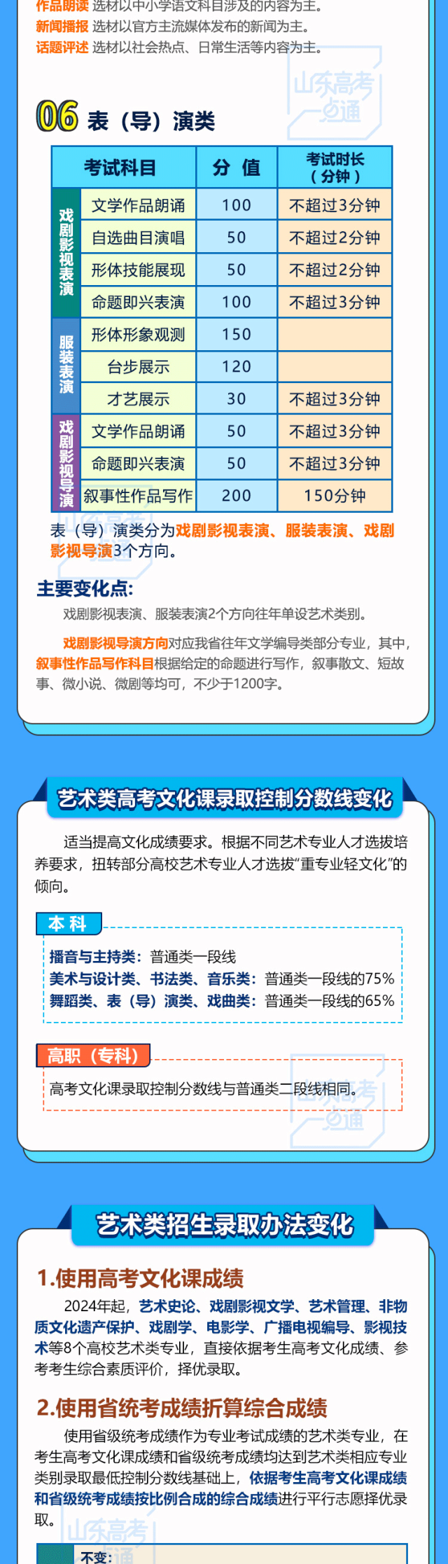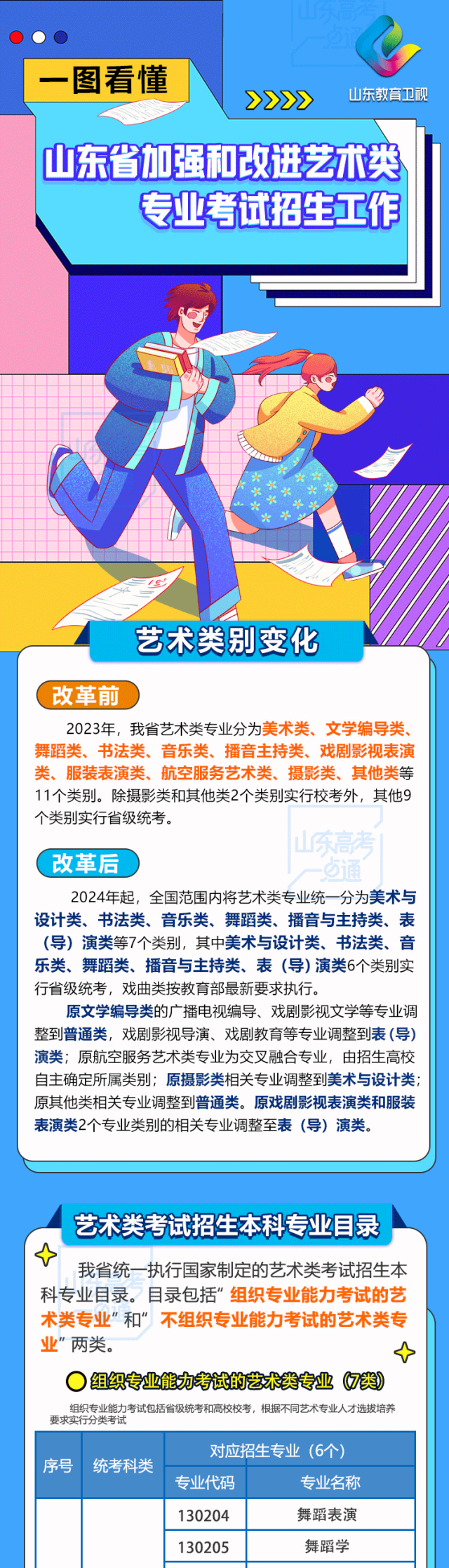 關(guān)于公布山東藝術(shù)學(xué)院藝術(shù)類校考專業(yè)的公告根據(jù)《教育部關(guān)于進(jìn)一步加強(qiáng)和改進(jìn)普通高等學(xué)校藝術(shù)類專業(yè)考試招生工作的指導(dǎo)意見》(教學(xué)〔2021〕3號)等文件精神,經(jīng)上級批復(fù), 2024年,我校作曲與作曲技術(shù)理論(專業(yè)代碼:130203)、雕塑(專業(yè)代碼:130403)2個專業(yè),可在藝術(shù)類專業(yè)省級統(tǒng)考合格基礎(chǔ)上組織???。有關(guān)報(bào)考詳情請關(guān)注我校本科招生信息網(wǎng)站(https://zsbgs.sdca.edu.cn/)。此前,山東省教育招生考試院發(fā)布了《關(guān)于印發(fā)山東省進(jìn)一步加強(qiáng)和改進(jìn)普通高等學(xué)校藝術(shù)類專業(yè)考試招生工作實(shí)施方案的通知》和《山東省2024年普通高考報(bào)考提醒》,公布了2024年特殊類型招生政策變化和藝術(shù)類招生政策變化。2024年起,全國范圍內(nèi)將藝術(shù)類專業(yè)統(tǒng)一分為美術(shù)與設(shè)計(jì)類、書法類、音樂類、舞蹈類、播音與主持類、表(導(dǎo)) 演類等7個類別,其中美術(shù)與設(shè)計(jì)類、書法類、音樂類、舞蹈類、播音與主持類、表 (導(dǎo)) 演類6個類別實(shí)行省級統(tǒng)考,戲曲類按教育部最新要求執(zhí)行。