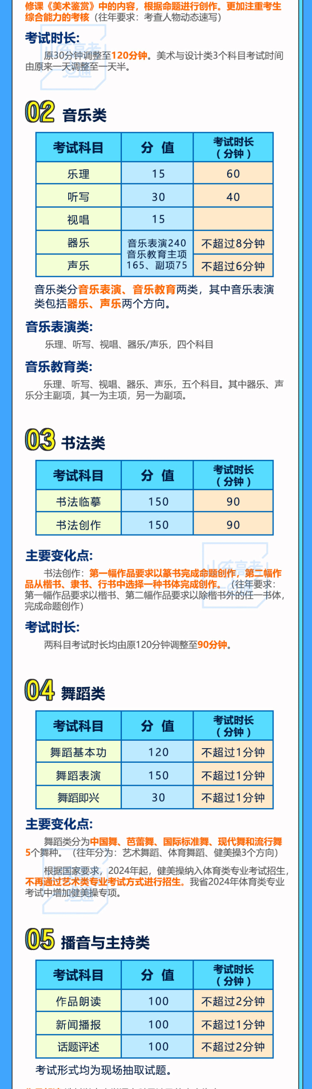 另外健美操項(xiàng)目調(diào)整至體育類專業(yè)招生。根據(jù)教育部有關(guān)要求,2024年起,我省將健美操納入體育專業(yè)測試。健美操專項(xiàng)考生的體育專業(yè)測試成績由基本素質(zhì)測試成績(包括100米跑、原地推鉛球、立定跳遠(yuǎn)等3項(xiàng)測試)和健美操專項(xiàng)測試成績組成。健美操專項(xiàng)測試標(biāo)準(zhǔn)動作樣片可在山東省教育招生考試院網(wǎng)站查看