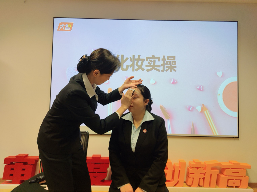 大智控股集團市場部總監(jiān)陳婷婷針對學(xué)科導(dǎo)師的職業(yè)特性,傳授了快速高效的日常妝容打造技巧,包括底妝選擇、眼妝自然提亮、唇色搭配等實用知識。婷婷總監(jiān)提到:“化妝不僅是外在美的提升,更是對自我和他人的尊重。作為學(xué)科導(dǎo)師,妝容應(yīng)簡潔大方,既展示專業(yè)性,又拉近與學(xué)生的距離。”并現(xiàn)場進行化妝實操。
