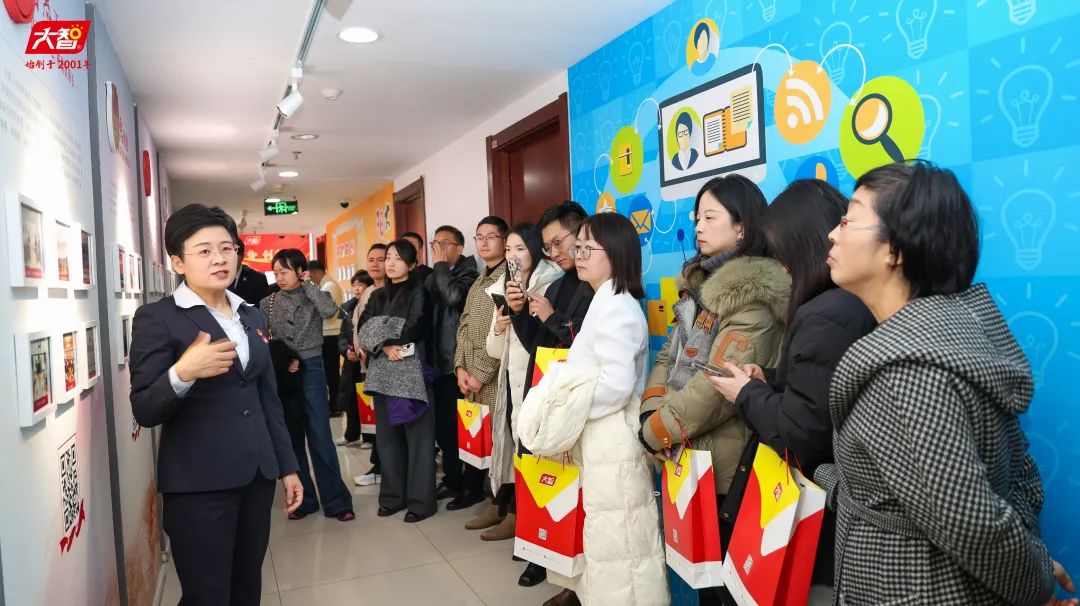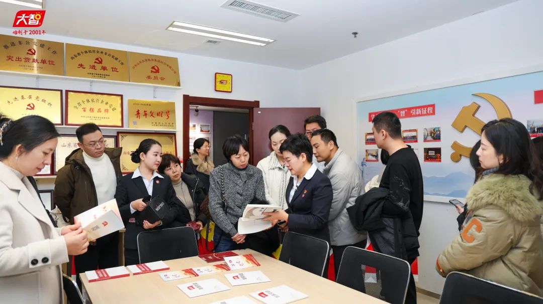 王現(xiàn)芹帶領(lǐng)大家參觀了黨建長(zhǎng)廊,詳細(xì)介紹了大智組織架構(gòu)、企業(yè)文化等相關(guān)情況,以及“智惠黨建一三九”黨建工作模式,黨建引領(lǐng)下的“一帶一促”群團(tuán)建設(shè)理念和“智惠+”群團(tuán)建設(shè)模式。