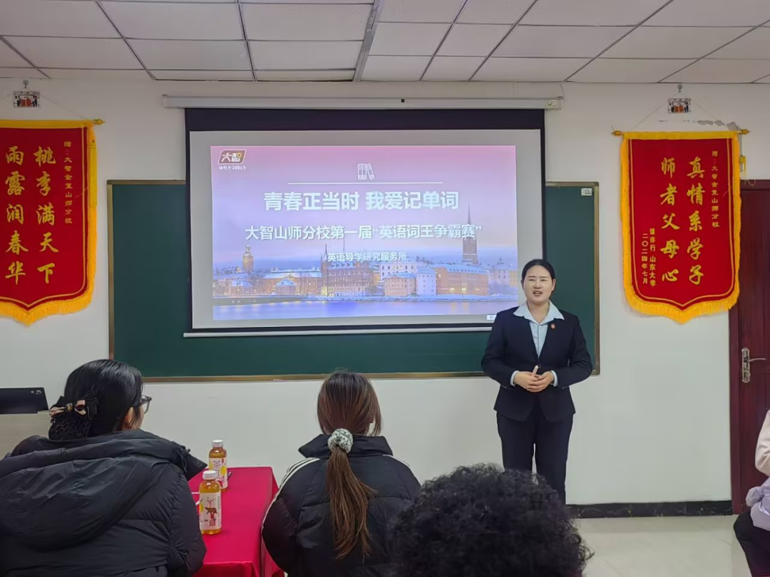 新時(shí)代背景下,學(xué)生需要成為德智體美勞全面發(fā)展的人才。英語學(xué)科中詞匯的學(xué)習(xí)是基石,不能通過死記硬背的方式學(xué)習(xí),需要通過科學(xué)的方法智慧地學(xué)習(xí),為訓(xùn)練學(xué)生學(xué)會(huì)用科學(xué)的方法記憶詞匯,正確運(yùn)用詞匯表達(dá)自我觀點(diǎn)并且找到學(xué)習(xí)英語的本質(zhì)樂趣,強(qiáng)化以知識(shí)為基,能力為重,素養(yǎng)導(dǎo)向,價(jià)值引領(lǐng),大智山師分校聯(lián)合英語導(dǎo)學(xué)研究服務(wù)所于1月4日成功舉辦以“青春正當(dāng)時(shí),我愛記單詞”為主題的大智第一屆“詞王爭霸賽”。