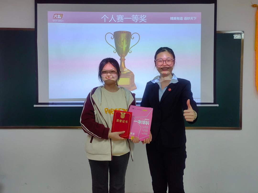本屆“詞王爭霸賽聯(lián)賽”比賽過程緊張激烈,熱鬧非凡。個(gè)人賽有三關(guān),分別是“詞匯大風(fēng)車,我來搶答之自由詞匯和我來搶答之場景主題詞匯”三部分,考查學(xué)生們的詞匯熟練度,發(fā)音精準(zhǔn)度,用主題語境方法積累詞匯。團(tuán)隊(duì)賽有四關(guān),分別是“快速識(shí)詞、你劃我猜、合力拼詞和連詞造句”四部分,考查學(xué)生用正確運(yùn)用構(gòu)詞法積累詞匯,正確運(yùn)用詞匯表達(dá)觀點(diǎn)以及團(tuán)隊(duì)凝聚力。參賽選手們充分展示出了自身實(shí)力,團(tuán)隊(duì)凝聚力,積極活躍參與本次大賽,展示出來了英語的樂趣和魅力。經(jīng)過激烈角逐,9位選手分別榮獲本次個(gè)人賽一等獎(jiǎng)、二等獎(jiǎng)和三等獎(jiǎng)榮譽(yù)證書以及獎(jiǎng)品,三個(gè)團(tuán)隊(duì)分別獲得團(tuán)隊(duì)賽一等獎(jiǎng)、二等獎(jiǎng)和三等獎(jiǎng)的榮譽(yù)以及獎(jiǎng)品!