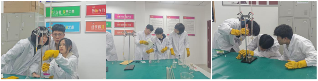 實(shí)驗(yàn)通過三人合作互助形式展開,由學(xué)科導(dǎo)師講解所做實(shí)驗(yàn)在高考中的重要地位以及考查形式,學(xué)生動(dòng)手實(shí)驗(yàn)操作,學(xué)科導(dǎo)師指導(dǎo)并規(guī)范其實(shí)驗(yàn)操作步驟。學(xué)員不僅在宏觀層面上對化學(xué)實(shí)驗(yàn)有整體認(rèn)識,同時(shí)在中觀層面能夠明確實(shí)驗(yàn)操作步驟,在微觀層面上細(xì)化實(shí)驗(yàn)規(guī)范。學(xué)生們?nèi)硇耐度耄诓僮髦欣斫鈱?shí)驗(yàn)理論,在實(shí)驗(yàn)中梳理規(guī)范流程,在創(chuàng)新中剖析實(shí)驗(yàn)本質(zhì)。