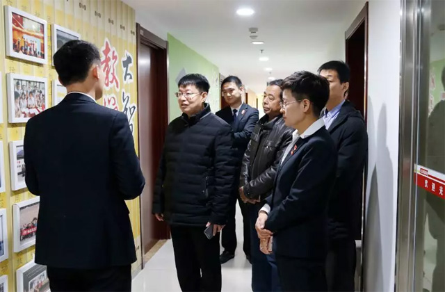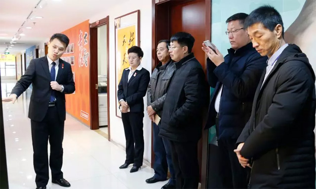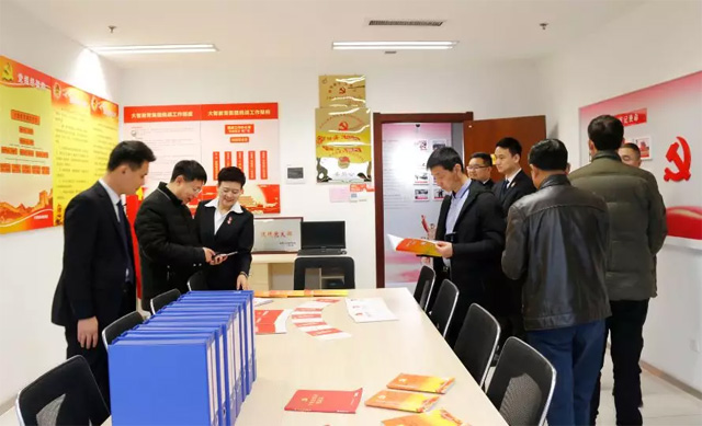 李開良一行首先參觀了大智控股集團(tuán)總部,從整體上了解了大智的發(fā)展歷程與企業(yè)文化,重點(diǎn)了解了大智“智惠黨建一三九”工作模式以及黨建引領(lǐng)下的大智 “一帶一促”群團(tuán)建設(shè)理念和“智惠+”群團(tuán)建設(shè)模式。