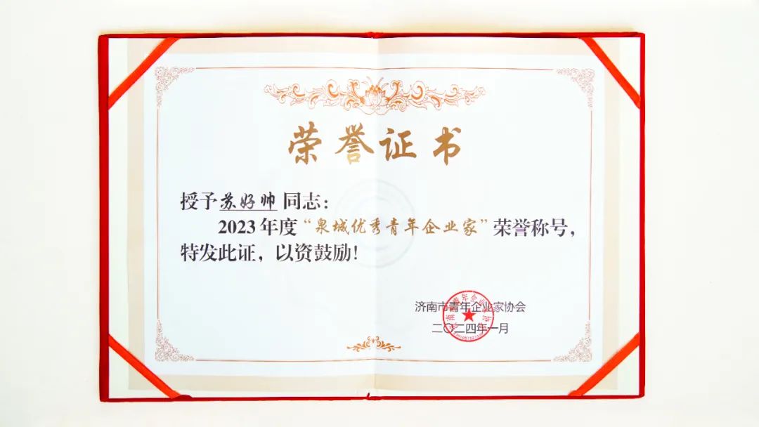 蘇好帥榮獲“泉城優(yōu)秀青年企業(yè)家”稱號