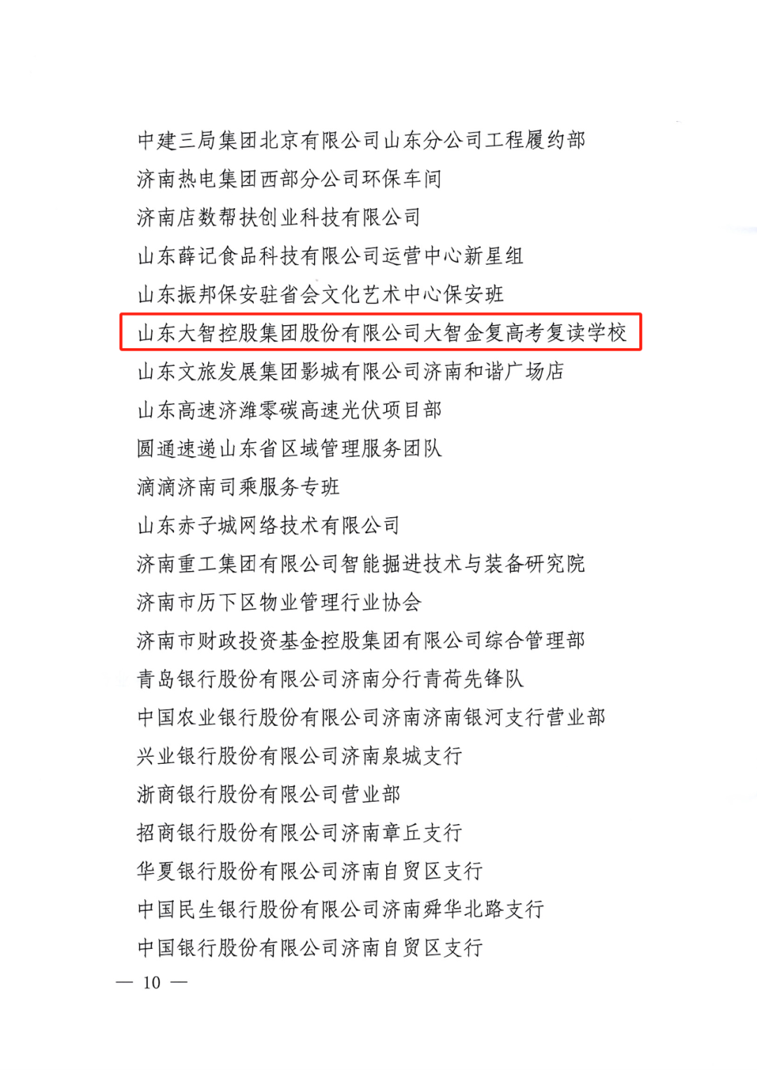 大智金復(fù)高考復(fù)讀學(xué)校榮獲2022-2023年度濟(jì)南市青年文明號(hào)榮譽(yù)稱(chēng)號(hào)