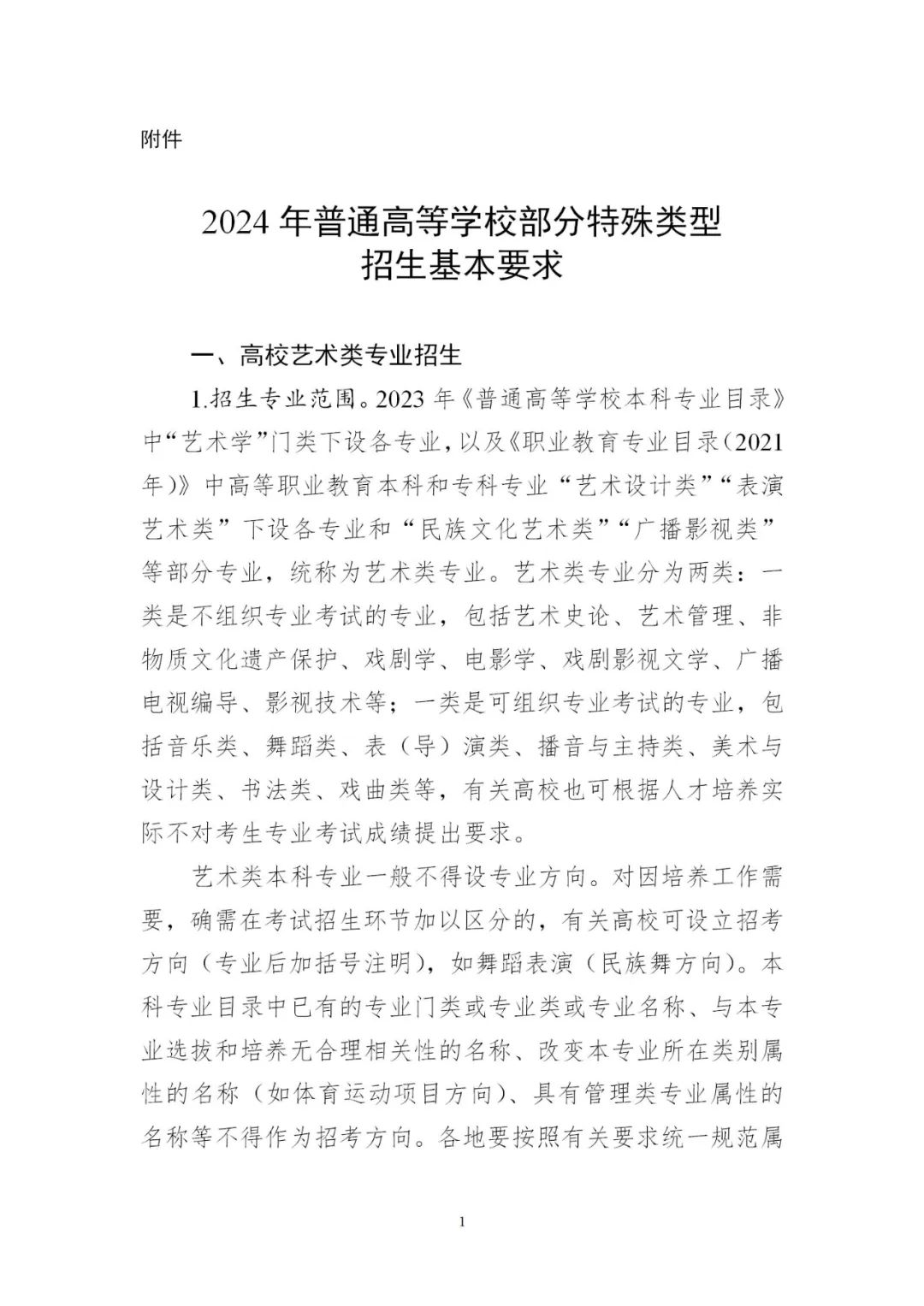 附件:2024年普通高等學校部分特殊類型招生基本要求