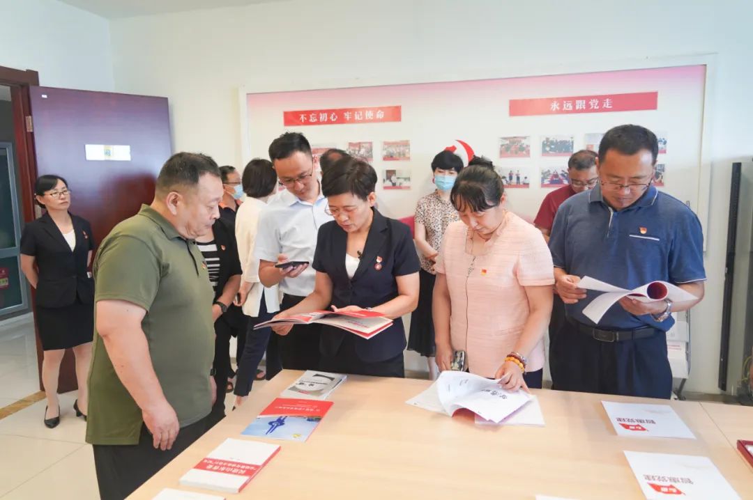 參觀黨員活動室,翻閱查看大智黨建相關資料。