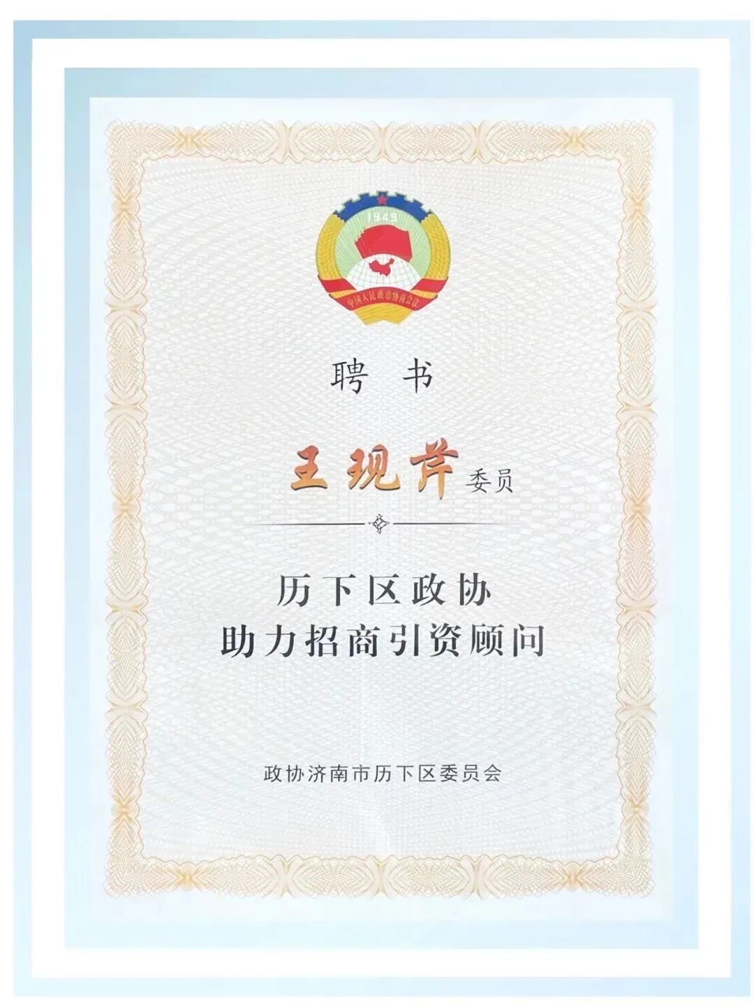 大智黨委書記王現(xiàn)芹被聘為“歷下區(qū)政協(xié)助力招商引資顧問”