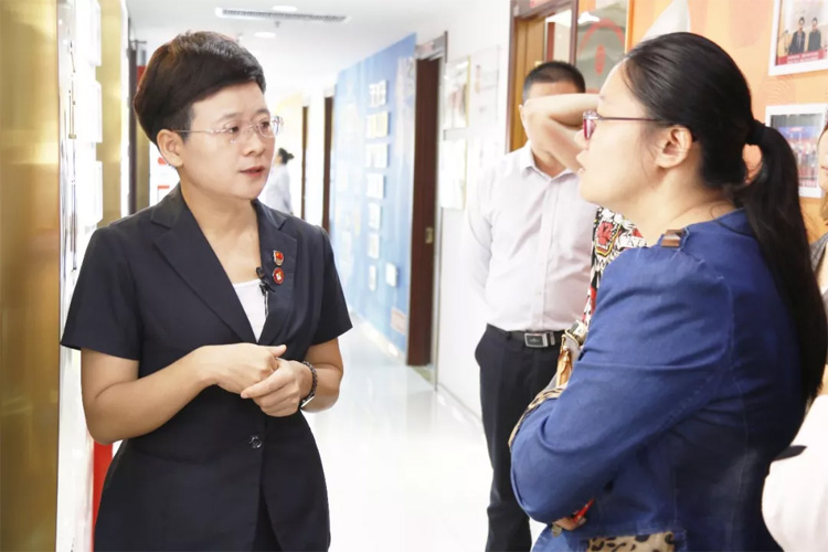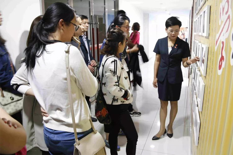 考察中,王現(xiàn)芹帶領(lǐng)大家參觀了大智教育集團(tuán)黨建陣地,介紹了大智“智惠黨建一三九”工作模式、所開展的黨建系列活動(dòng)、大智“一帶一促”群團(tuán)建設(shè)理念和“智惠+”群團(tuán)建設(shè)模式。