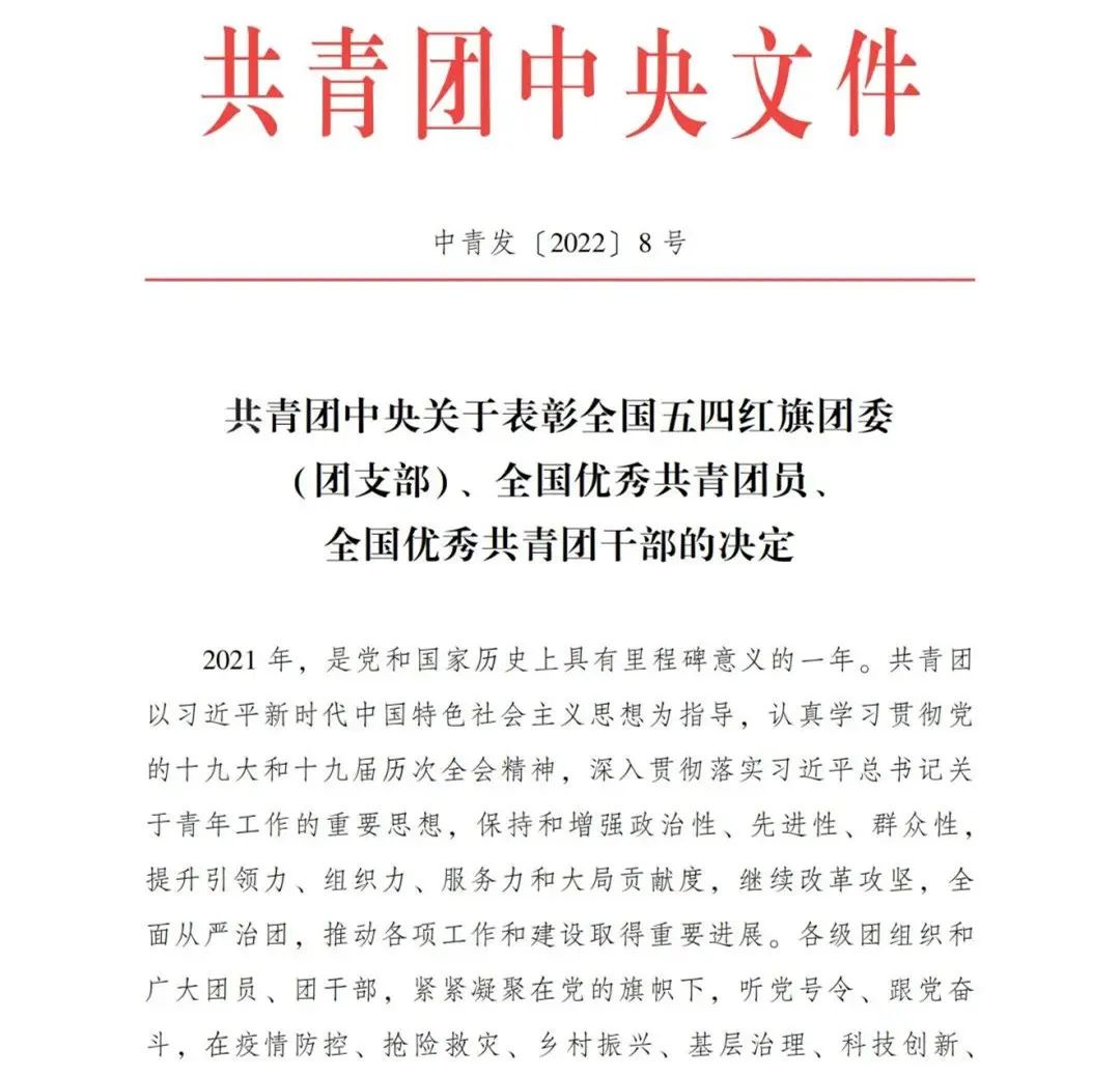 2022年是中國(guó)共青團(tuán)成立100周年。近日,共青團(tuán)中央發(fā)布《共青團(tuán)中央關(guān)于表彰全國(guó)五四紅旗團(tuán)委(團(tuán)支部)、全國(guó)優(yōu)秀共青團(tuán)員、全國(guó)優(yōu)秀共青團(tuán)干部的決定》,大智集團(tuán)團(tuán)委榮獲“全國(guó)五四紅旗團(tuán)委”稱號(hào)。