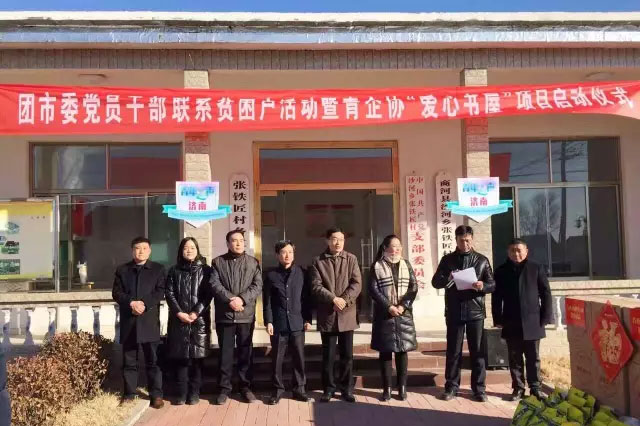 在張鐵匠村文化大院,團(tuán)市委副巡視員、市團(tuán)校校長賈峪、張維東共同為青企協(xié)“愛心書屋”揭牌,一行人見證了青企協(xié)“愛心書屋”項(xiàng)目的正式啟動(dòng)。